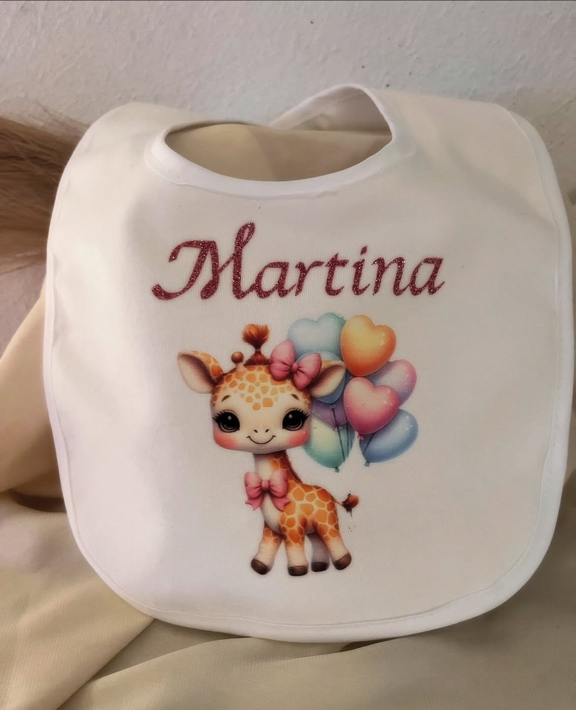 Un accessorio indispensabile per i più piccoli, pratico e dolcissimo! Questo bavaglino bianco in morbido cotone è arricchito da una stampa tenera e variabile a seconda del tema scelto. Ogni pezzo è reso unico dalla personalizzazione con il nome, trasformandolo in un ricordo speciale o in un regalo perfetto per una nascita o un’occasione speciale.