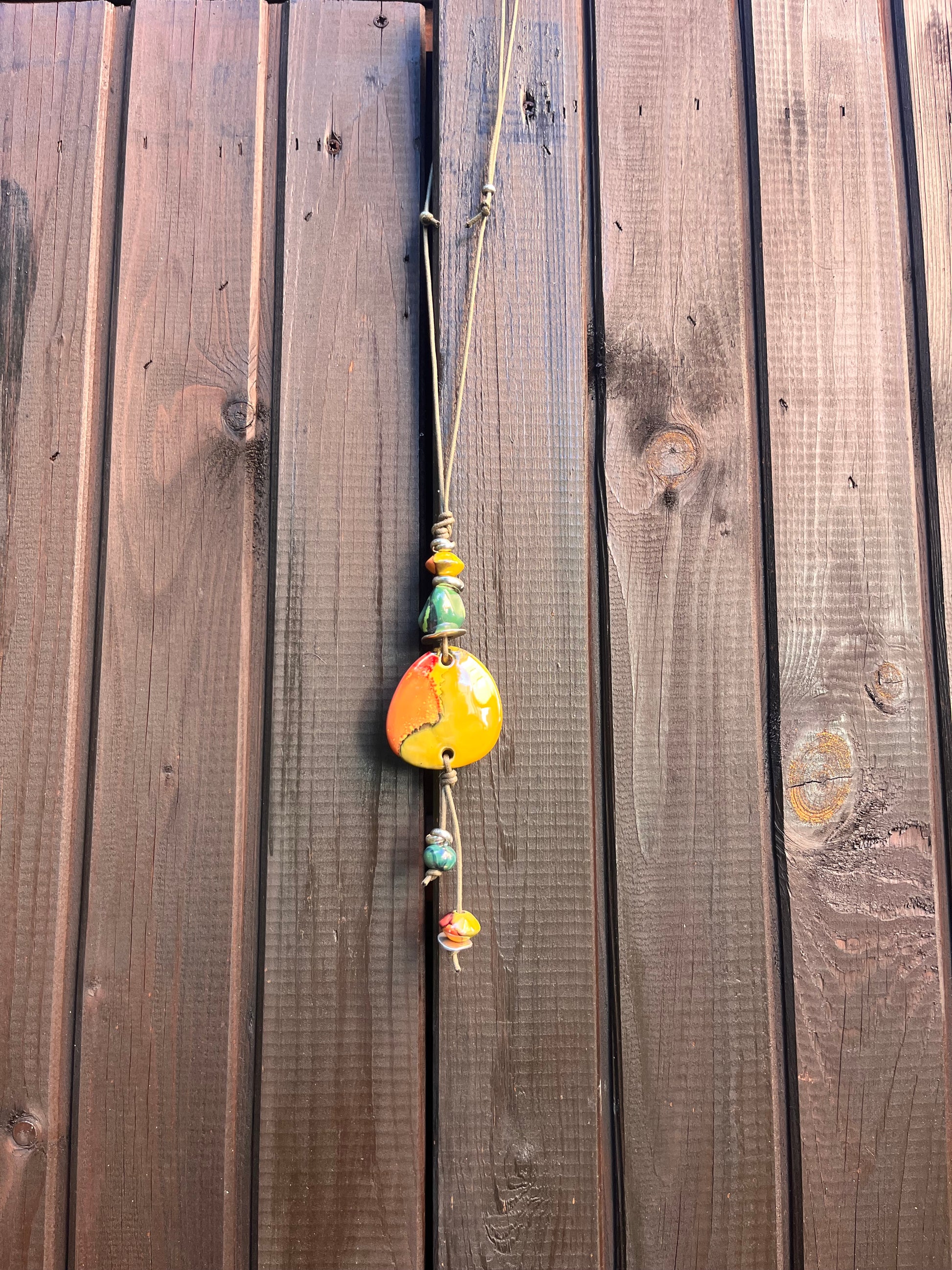 Elegante e unica, questa collana artigianale è realizzata con pietre in ceramica greca smaltata, che donano luce e colore ad ogni look. I componenti in zama aggiungono un tocco raffinato e resistente, mentre la chiusura con doppio cursore permette di regolare facilmente la lunghezza in base allo stile desiderato.